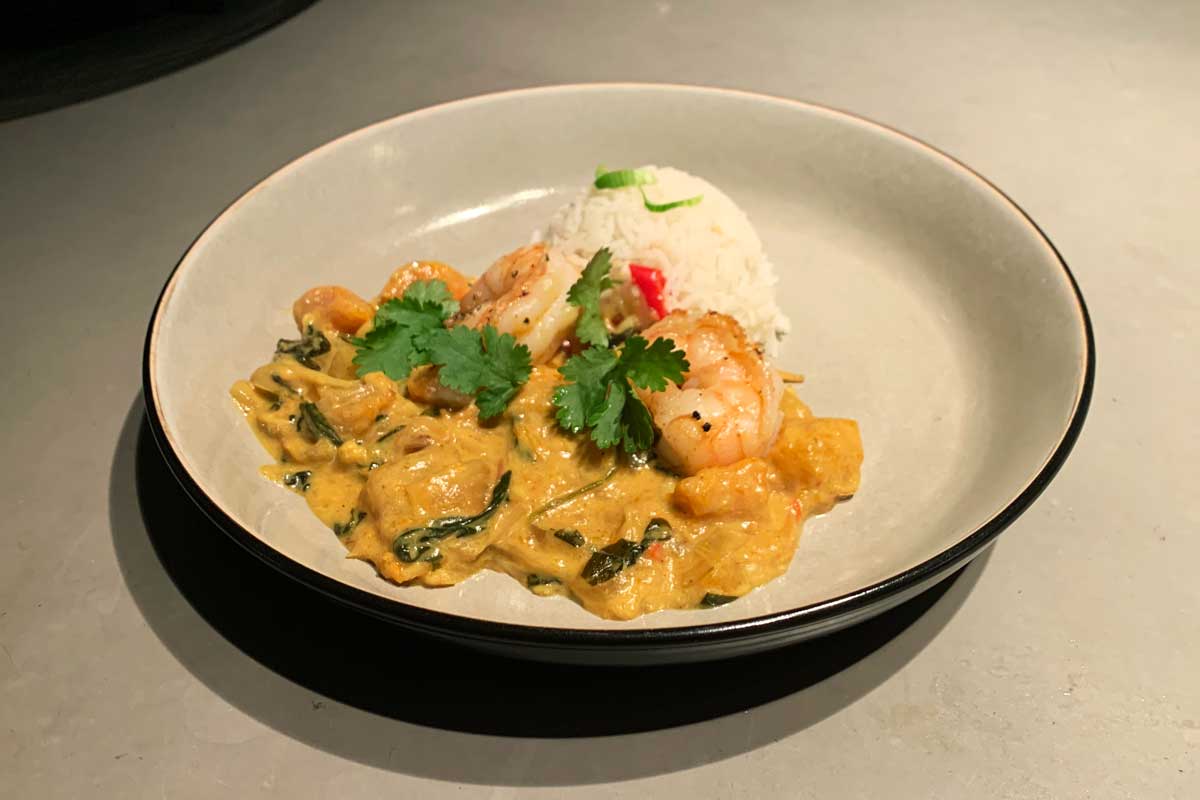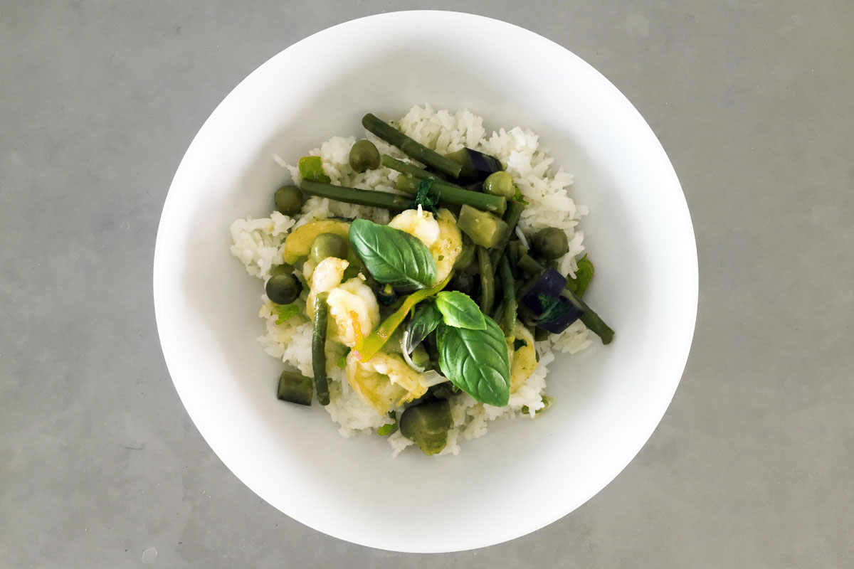 Mean green Thaise curry met Thaise aubergines en gamba’s