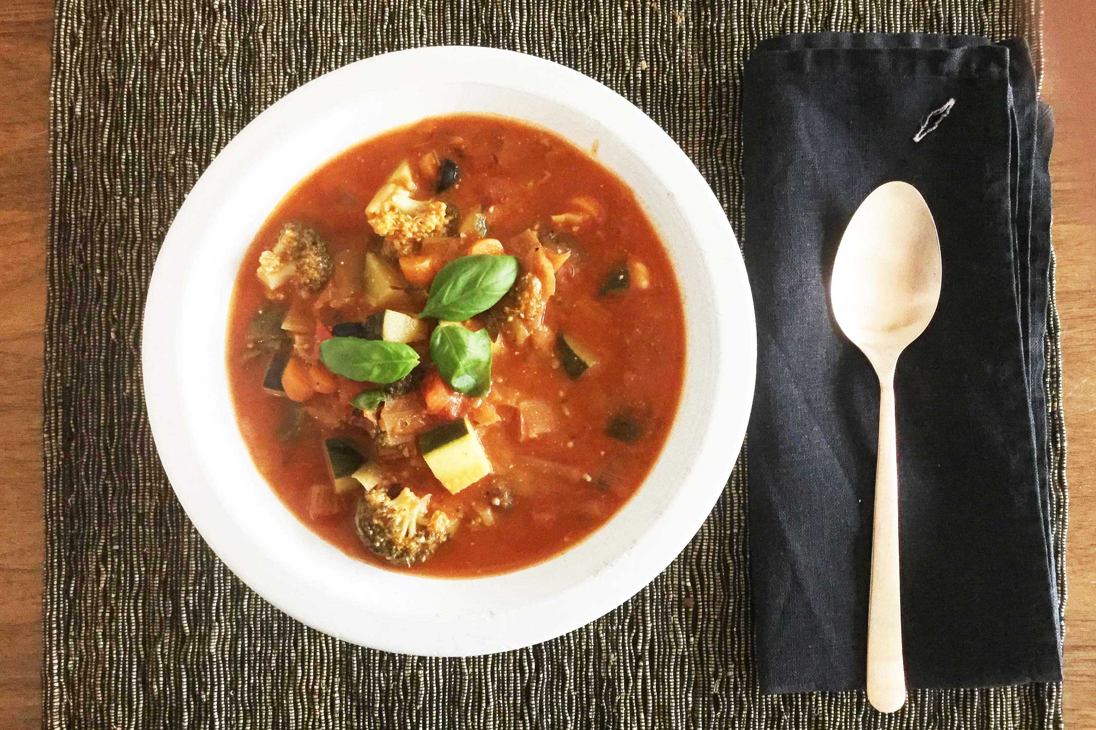 Dit is zo’n soep die altijd goed is. Veel groenten, weinig gedoe en volop smaak. Ideaal voor doordeweeks, maar ook ideaal als je veel gasten krijgt;…