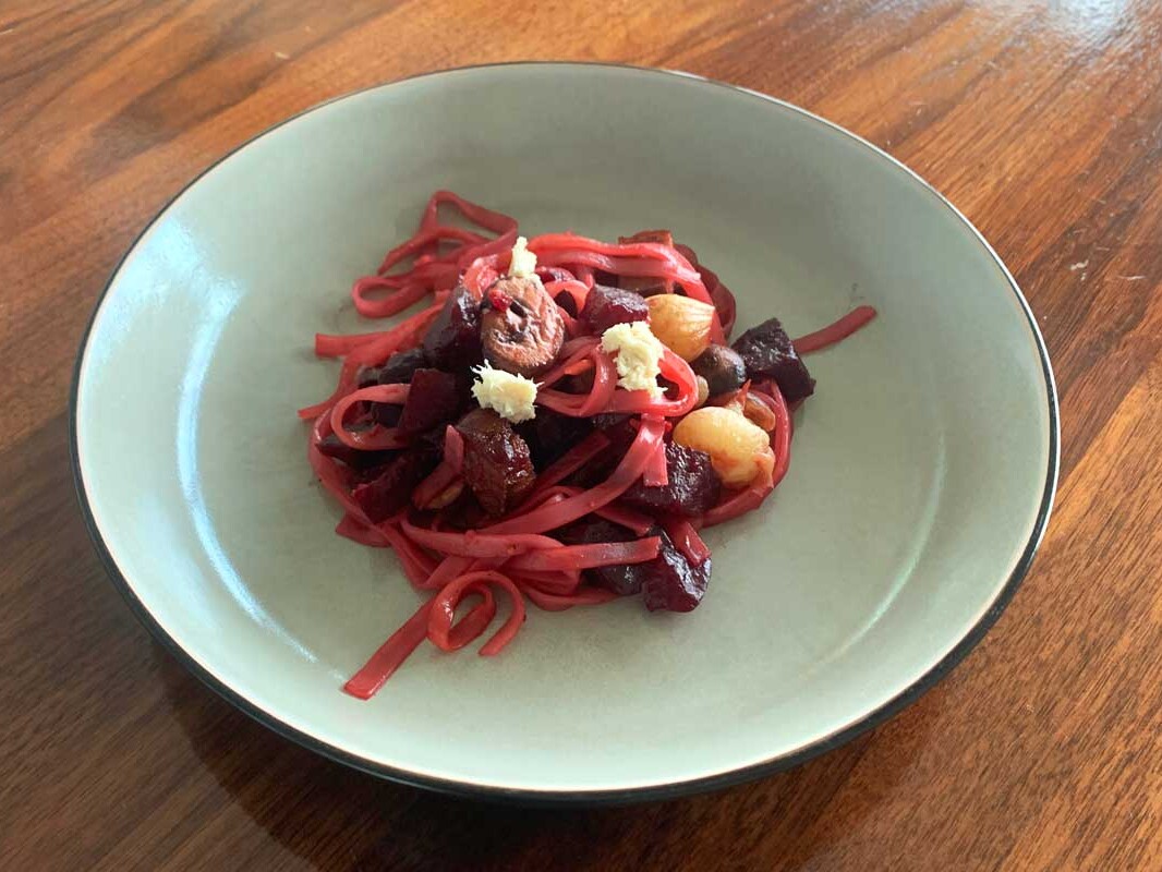 Salade van bietjes, appels, walnoten en buffelmozzarella